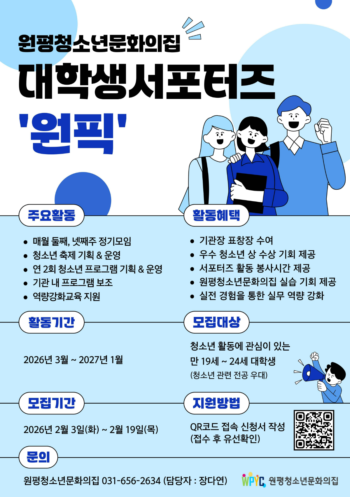 원평청소년문화의집 대학생 서포터즈 원픽 신규인원 모집