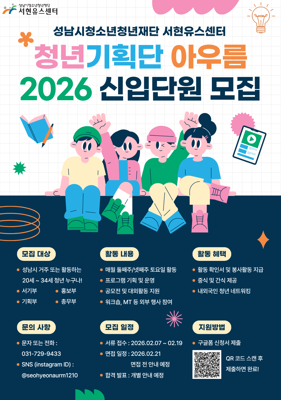 - 성남시청소년재단 분당서현청소년수련관 청소년사업팀 ☎ 031-729-9433 바로가기