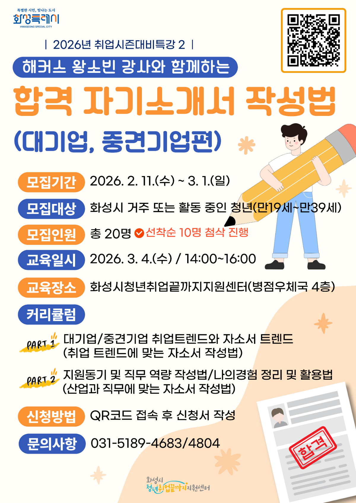 - 화성시청년취업끝까지 지원센터 ☎ 031-5189-4683 바로가기