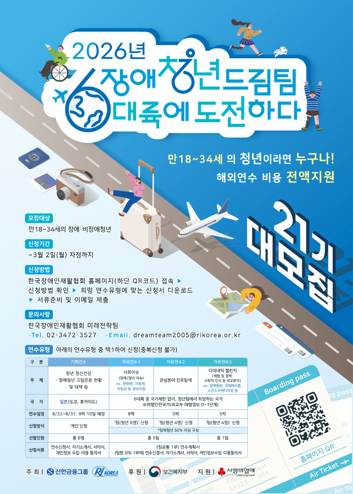 청년 해외연수 프로그램, 2026년 장애청년드림팀 6대륙에 도전하다
