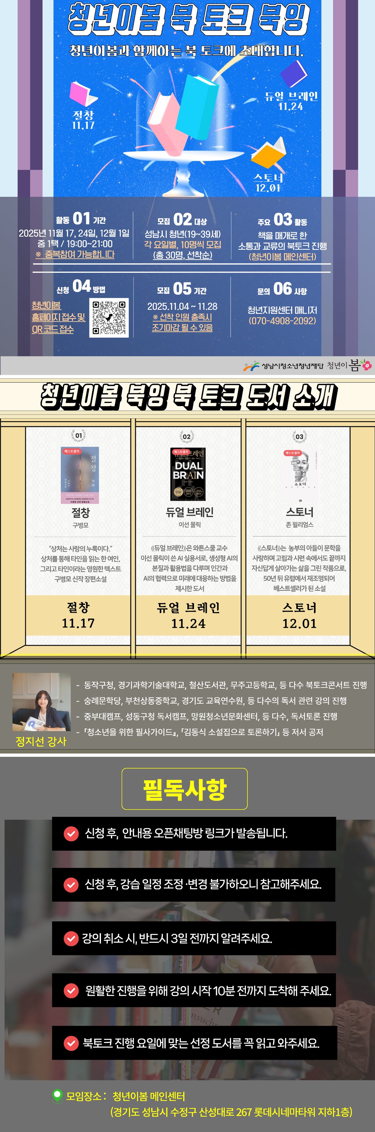 2025년 성남시 청년공간 청년이봄 문화라운지 『북잉』 책을 좋아하는 청년이여 모두 모여라! 청년이봄과 함께하는 북토크로 로 청년 여러분을 초대합니다.