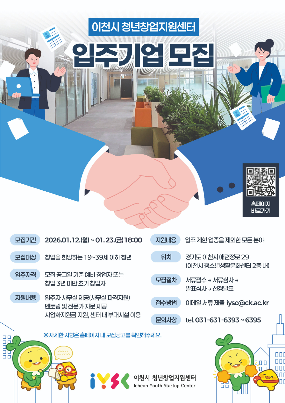 - 이천시 청년창업지원센터 ☎ 031-631-6393 바로가기