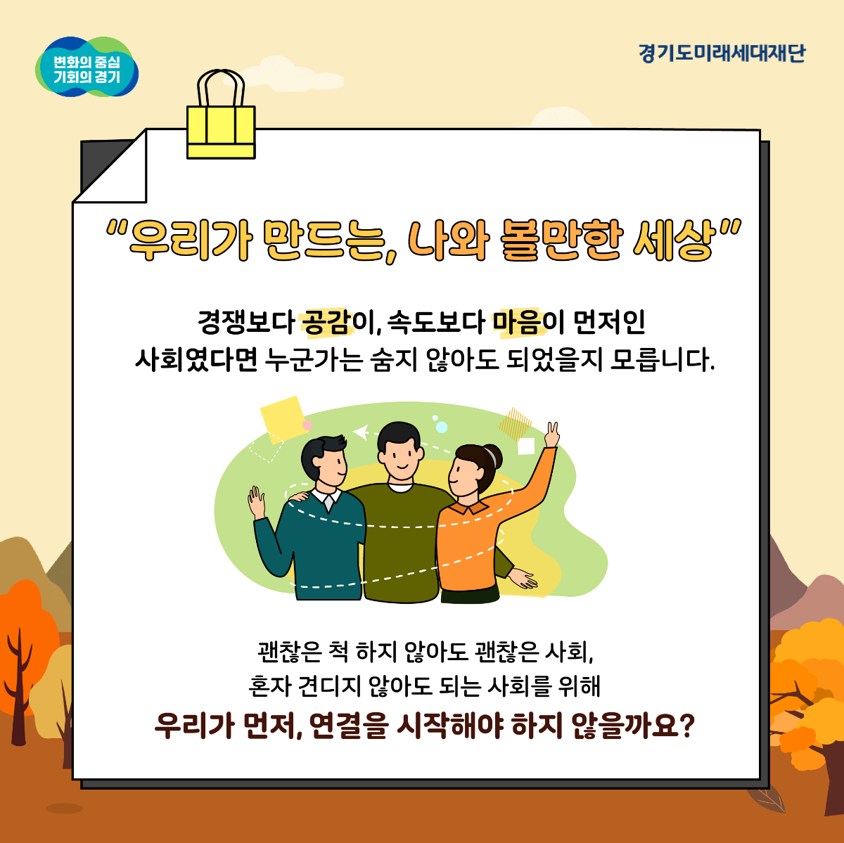 👉 비교보다 응원이 많은 사회, 경쟁보다 연결이 중요한 사회