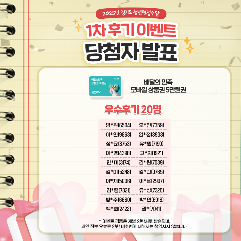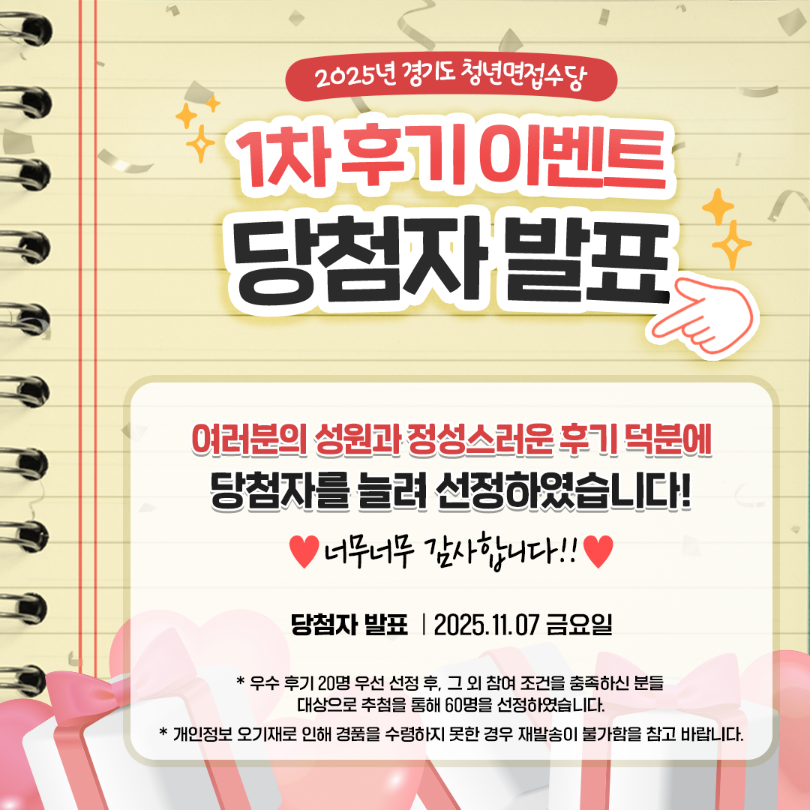[EVENT 당첨자 발표]✨2025년 경기도 청년 면접수당 1차 후기 이벤트✨