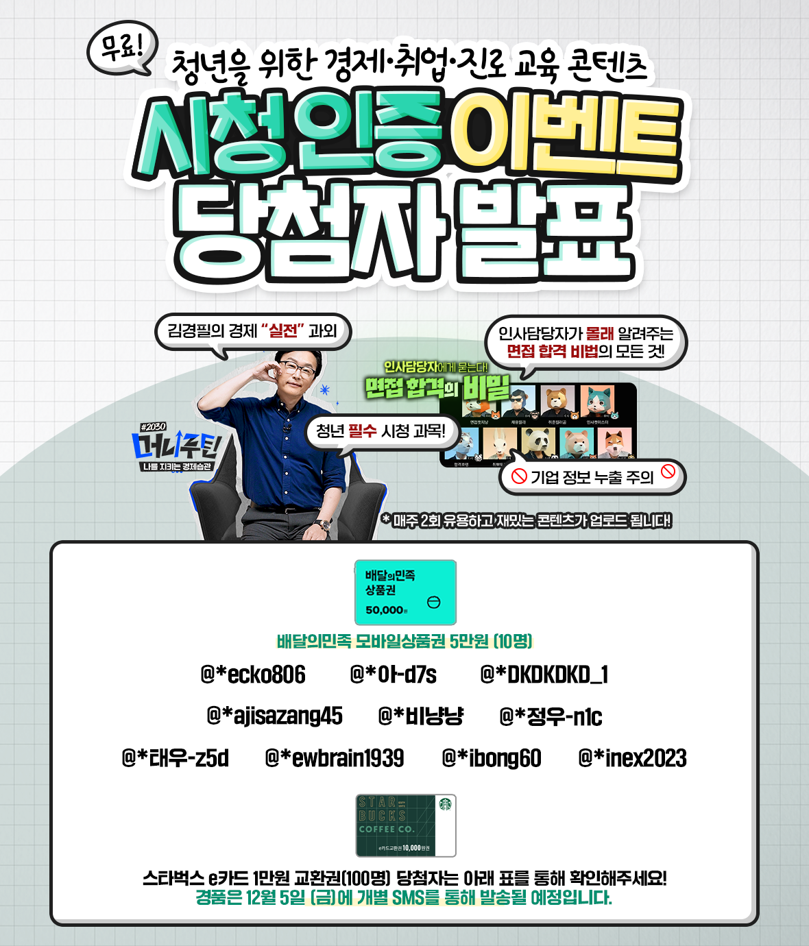 [📢당첨자발표] 청년을 위한 경제,취업,진로교육 시청인증 이벤트 💡